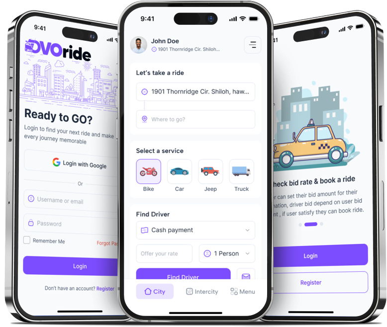 Os passageiros inserem seus detalhes de viagem e os motoristas enviam lances competitivos. Os passageiros podem comparar ofertas com base em preços e classificações.